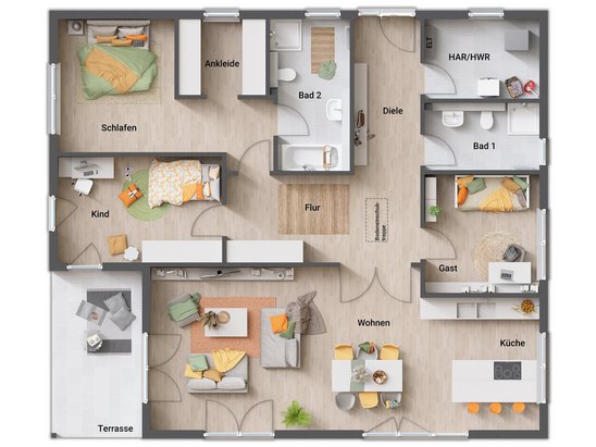 Wohnen auf einer Ebene mit fünf individuellen Grundrissideen