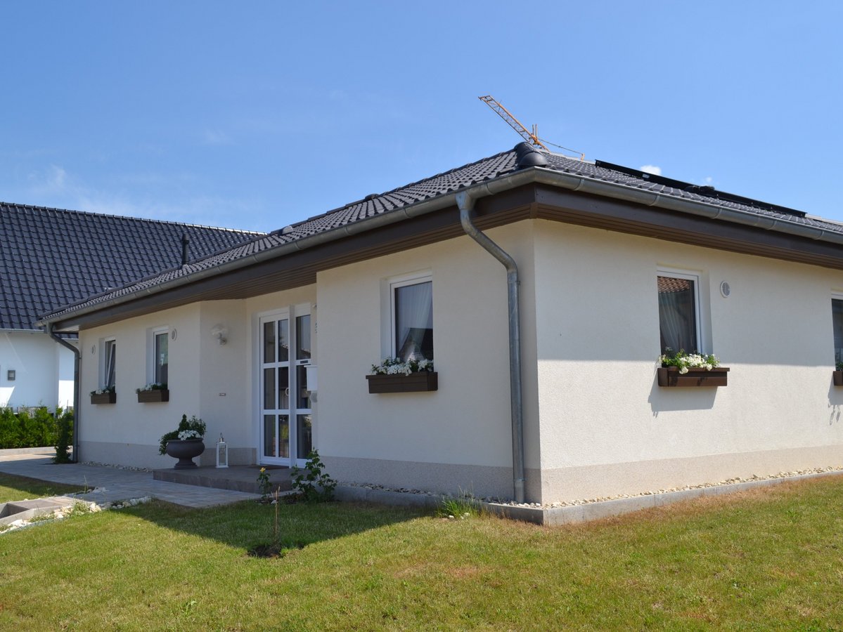 Sie verfügen über ein schönes, weitläufiges Wohnzimmer. Die abgeschlossene Küche hat einen direkten Zugang zum gemütlichen Essbereich. Das geräumige Schlafzimmer sowie zwei weitere Zimmer und das Bad runden das Raumangebot im Winkelbungalow 108 ab.